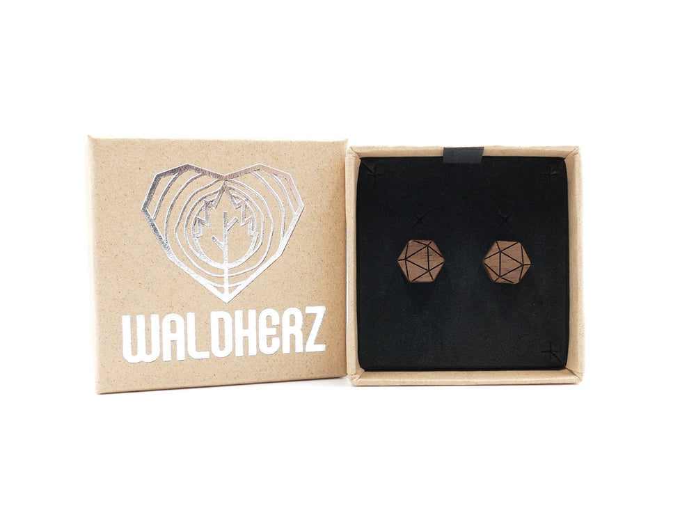 Silber Ohrstecker "Geometrisches Polygon" Walnussholz